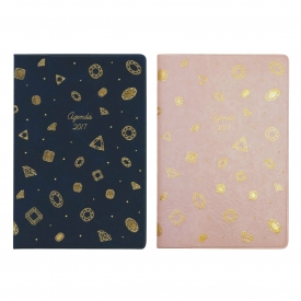 オレンジエアラインズの2017年1月始まりダイアリー。星や雑貨などをモチーフにしたさりげないイラストをあしらった、かわいくて品のよいデザインが特徴です。