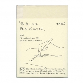 にじみや裏写りが少なく、非常に滑らかな書き心地のオリジナルペーパー「MD用紙」を採用した手帳です。糸かがり製本で丈夫に綴じられているため、180度フラットに開くことができます。