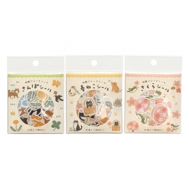凹凸のある和紙を用いた、かわいいイラストのフレークシール。