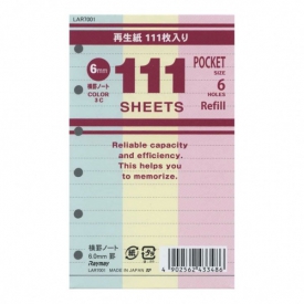 ミニ6穴サイズ 6mm横罫 再生紙 111枚入り 徳用【3色】システム手帳リフィル