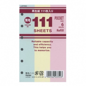 > ミニ6穴サイズ 無地 再生紙 111枚入り 徳用【3色】システム手帳リフィル