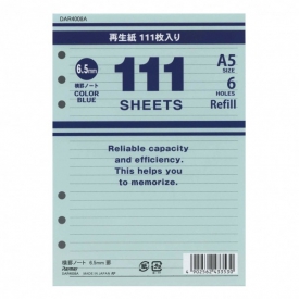 A5サイズ 6穴 6.5mm横罫 再生紙 111枚入り 徳用【ブルー】システム手帳リフィル