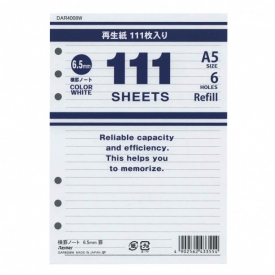A5サイズ 6穴 6.5mm横罫 再生紙 111枚入り 徳用【クリーム】システム手帳リフィル