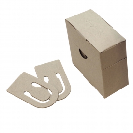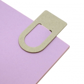 芯材で使用するチップボール紙でできた、めずらしい紙製のクリップ。紙を傷めずしっかりホールドし、コピー用紙なら12枚は挟めます。また、上部のスペースにはメモが書き込め、ふせんの役割も果たします。ブックマークとしてもおすすめ。