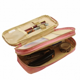 デスクに散らばる文房具をまとめて収納できる大容量のトレイ型ペンケース。