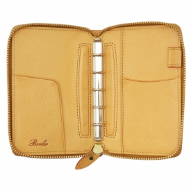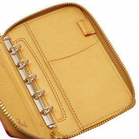 イタリアの名門タンナー「BADALASSI CARLO」社製ミネルバボックスを使用したミニ5サイズのラウンドジップ式システム手帳バインダー。