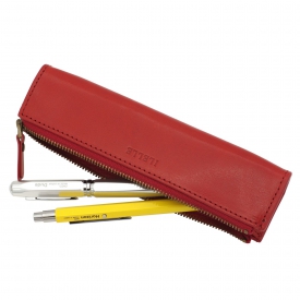 イルエル オイルレザー 三角ペンケース【レッド】本革 ギ ...