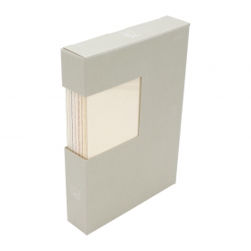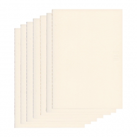 文字をなめらかに書くことが出来、にじみや裏写りがほとんどないデザインフィルオリジナル用紙「MD用紙」を使用。色ごとに書く内容を分けたり、2ヶ月で1冊として1年使うなど、自由にお使いいただくことができます。本文は原稿用紙をイメージした5mm方眼罫フォーマット。罫線色はエンジ、緑、水色、紺、紫、茶、黄色の7色で、中ミシン綴じの糸色を罫線色に合わせているのもポイントです。耐久性にすぐれた製本方法の「中ミシン綴じ」は、ページの開きが良く、ストレスなく筆記ができます。罫線色に合わせた鮮やかな糸色が、ページの間や背表紙からさりげなくのぞきます。7冊のノートがすっきりときれいに納まる、特別仕様の紙製パッケージ入り。