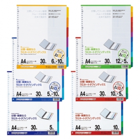 > ラミネートタブインデックス 幅広 5山 30穴(クリアポケット用)