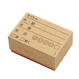 絵本の読み聞かせを記録するスタンプです。タイトル、作・絵、出版、反応を記入できます。所持しているのか、借りものなのか、どこで借りたのか視覚的に分かりやすく情報を記録する項目もございます。