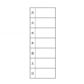 一週間分の小さめのメモが書けるスタンプです。その日に使った金額、体重、体温、気温、勉強時間など、自由に記入してお使いいただけます。