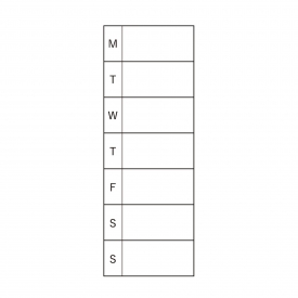 一週間分の小さめのメモが書けるスタンプです。その日に使った金額、体重、体温、気温、勉強時間など、自由に記入してお使いいただけます。