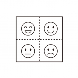 気分チェッカーのスタンプです。その日の気分や体調を4つの顔文字枠を塗りつぶすことで記録できます。ウィークリー・デイリーログ・バーチカルなど、様々な手帳ページに押しやすいサイズです。