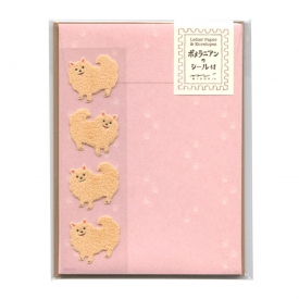 レターセット【ポメラニアン柄 シール付】便箋 封筒 シー ...