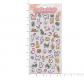 ニュアンスグラス シール【ネコ】かわいい クリア デコ