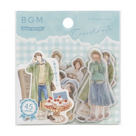 コーディネート シール 45枚入【人物水彩・グリーン】ステ ...