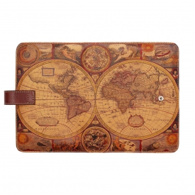 ヌメ革と同様、なめした後に仕上げ剤を使った表面加工を殆ど行っていないため、手に馴染み易く自然な質感です。手触りのソフトなヌバック(表面をごく軽く起毛させ、ベルベット状にした革)に仕上がっています。16世紀エリザベス女王やジェームズ王の命により製作もされていた英国の著名なカータグラファー、ジョン・スピード晩年の古地図がモチーフとなっています。