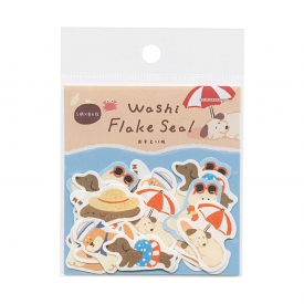 夏限定 和紙フレークシール 20枚【おそといぬ】