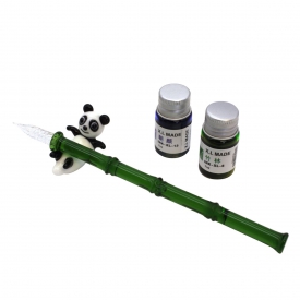 パンダ ガラスペン ペン置き付【みどり】かわいい 入門