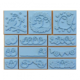 かわいいシマエナガのはんこセット。かわいい絵柄のはんこが12個詰まっています。