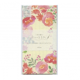 > 今日のお手紙 一筆箋 美濃和紙 【赤やピンクのお花】