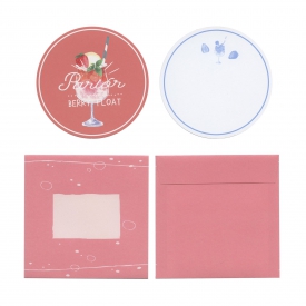 さわやかなソーダドリンクをイメージした、封筒付きの円形メッセージカード。