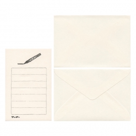 みんなが大好きな、ずっと昔からいつも使っている、あの文房具たちがデザインされた、レトロな雰囲気の小さなレターセットです。