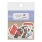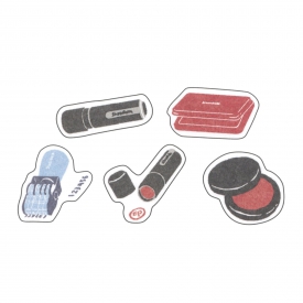印鑑メーカーで有名なシヤチハタの、スタンプ台や、ネーム9、データスタンプがフレークシールになっています。
