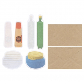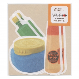 いつも側にあるヤマトのロングセラー商品がダイカットの便箋になっています。おなじみのスティックタイプのアラビックヤマト、蓋付きの容器に入ったヤマト糊、緑色のヤマトのりがそのままの形でデザインされています。