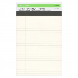 A5サイズのフィールドパッド対応、情報の書き分けや検索がスムーズに行えるマージン罫入りの7ミリ横罫ライプのメモパッドです。