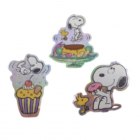 スイーツとスヌーピーのデザインが楽しいホログラムステッカーのセットです。
