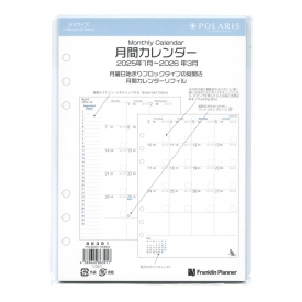 2025年 1月始まり A5サイズ ポラリス 月間 ブロック見 ...
