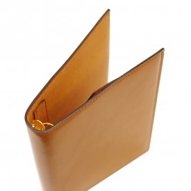表側には純粋なアニリン水性染料仕上げを施すレーデルオガワ製のコードバンを贅沢に一枚革で使用。内側にはイタリア・ヴィルジリオ社製のマルゴーを使用しています。染料染めの色味の深さと独特な光沢があり、少しづつ色艶を増す経年変色が楽しめます。