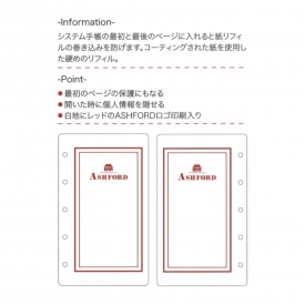 システム手帳の最初と最後のページに入れると紙リフィルの巻き込みを防げるプロテクターリフィルです。コーティングされた紙を使用した硬めのリフィル。