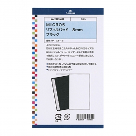 芯材に生地を張り込んで作られたミニ5サイズの8mmリフィルパッドです。バインダーとして気軽に単体で使用したり、システム手帳のカバー部分に差し込んで使用できます。