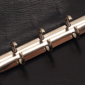ロディアらしい携帯性でメモに特化した形状、そこにシステム手帳の保存性を加えたミニ3穴システム手帳のハイエンドモデルです。グレージング加工でしか表現できない透明感と上品な光沢は黒の色を一層深いものにします。上質な素材と希少性の高い加工技術から生まれた逸品。シンプルでごまかしのきかないアニリンレザー、革本来の立体的で奥行のある表情をお楽しみください。リングはクラウゼ社の3穴バインダーを採用。上下どちらからも入る2WAYポケット付き。