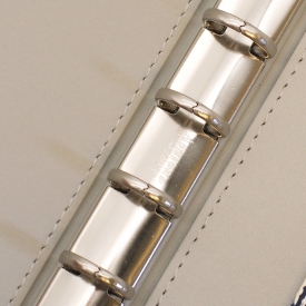 シンプルなスクエアバックスタイルは、180度しっかりと開閉する仕様で使いやすさも抜群。さらに、シャークレザーの軽量性が持ち運びの負担を軽減します。