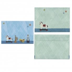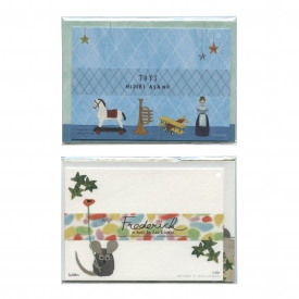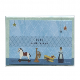 イラストレーター浅野みどりさんのイラストが描かれたミニレターセットです。かわいいおもちゃが描かれています。