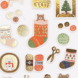 冬季限定 箔押しシールシート【あみものくまさん】かわいい