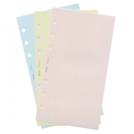 3色カラー入りのバイブルサイズの方眼リフィルです。書く内容と紙の色を合わせれば、後で整理するのに便利です。