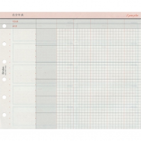 将来の夢や人生設計、過去の振り返りなどができる、5年単位の年表が作成できるミニ6サイズのリフィルです。