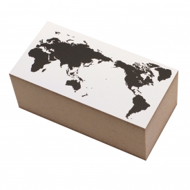 ありそうでなかった世界地図ハンコ。エアメールのポイントに押したり、無地の紙にたくさん押して包装紙の模様として利用しても素敵です。