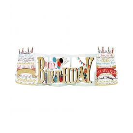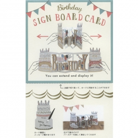 スタンドタイプの飾れるバースデーカードです。表紙と裏表紙を持って、そのままカードを広げると「HAPPYBIRTHDAY」の文字が現れます。そのまま立てて飾っておけるので、バースデーパーティーの演出にぴったりです。