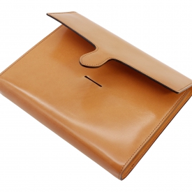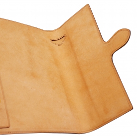 表側には取れる部分が希少なコードバンを贅沢に一枚革で使用。そのコードバンは純粋なアニリン水性染料仕上げを施すレーデルオガワ製です。内側にはイタリア・ヴィルジリオ社製のマルゴーを使用しています。染料染めの色味の深さと独特な光沢があり少しづつ色艶を増す経年変色が楽しめます。