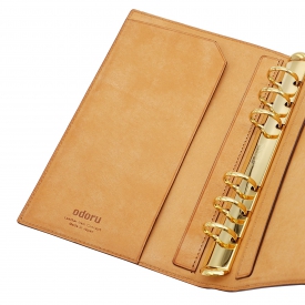 ベルトの先端が内側に隠れるシンプルな見た目が特徴の「カクシシリーズ」のシステム手帳です。