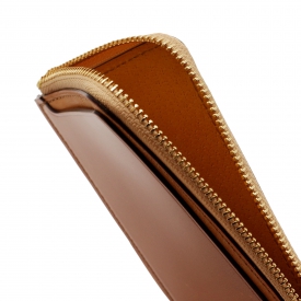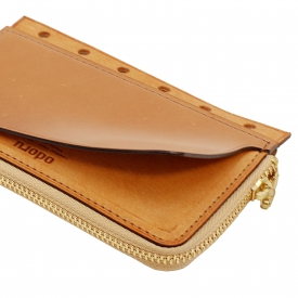 純粋なアニリン水性染料仕上げを施すレーデルオガワ製のコードバンを採用したジッパーポーチリフィルです。小銭やカードの保管に活躍します。染料染めの色味の深さと独特な光沢があり少しづつ色艶を増す経年変色が楽しめます。