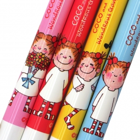 キャップが無くても乾かないノック式水性カラーペン「クリッカート」のココちゃん限定軸4色セットです。