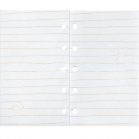 用紙は書き心地の良いトモエリバーを採用。フリーハンドで描かれたような、だいたい合っている、横罫だいたい7mmのM5サイズのリフィルです。5パターンの絵柄が各10枚ずつ入っています。