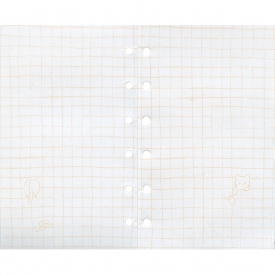 用紙は書き心地の良いトモエリバーを採用。フリーハンドで描かれたような、だいたい合っている、方眼罫だいたい5mmのM6サイズのリフィルです。5パターンの絵柄が各10枚ずつ入っています。