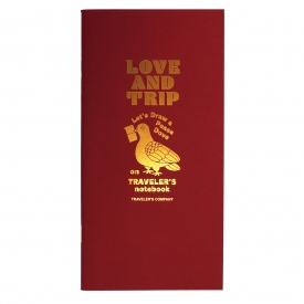 トラベラーズノート「LOVE AND TRIP」用のリフィルです。赤い表紙にLOVE AND TRIPのデザインを箔押しで施し、筆記性に優れたMD用紙クリームを使っています。